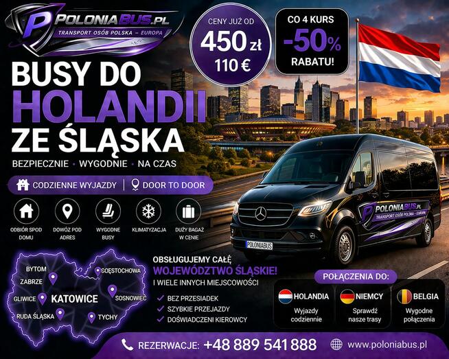 BUSY DO HOLANDII CODZIENNIE – BEZ PRZESIADEK! TANIO OD 450 ZŁ Telefon +48 889 541 888 Szukasz pewnego i wygodnego ...
