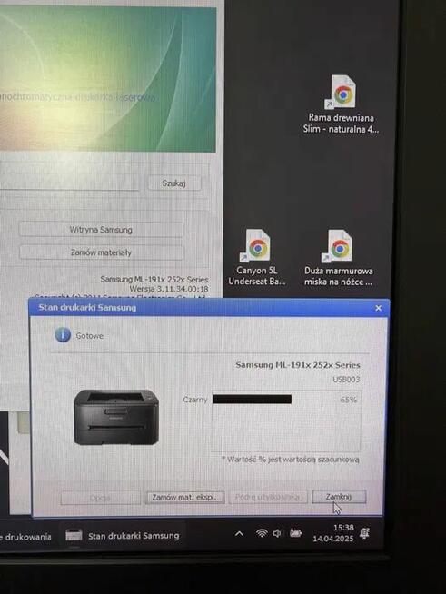 Drukarka Samsung ML 1915 laserowa czarno biała . Sprawna . Ładne wydruki . Tania w eksploatacji ( toner ok 40 zł)