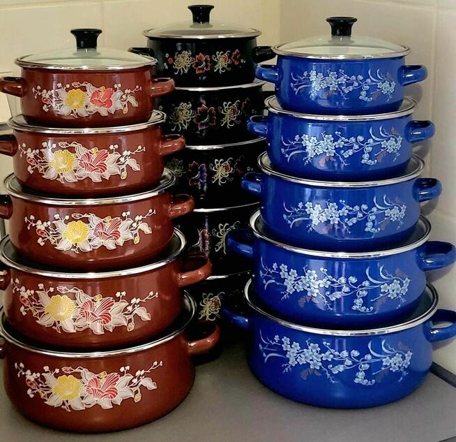 Garnki emaliowane różne wzory