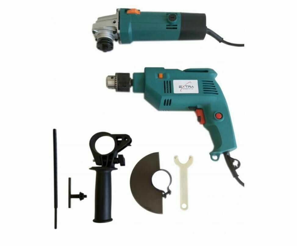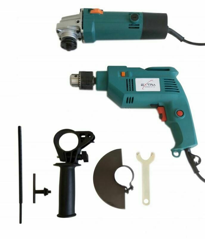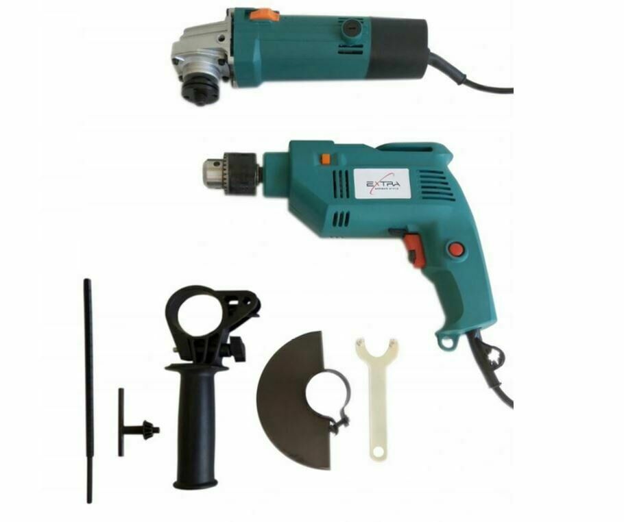Witam,Dziś dla państwa w ofercie zestaw Szlifierka + wiertarka udarowa w atrakcyjnej cenie! Zestaw idealny do garażu bądź gospodarstwa domowego. Świetny dla majsterkowiczów, niezbędny podczas remontów jak i drobnych prac w gospodarstwie domowym. Szlifierka posiada antypoślizgową rączkę z tworzywa sztucznego, która pozwala na bezpieczne użytkowanie w każdych warunkach. Urządzenie dzięki możliwości montażu rękojeści w dwóch pozycjach jest dedykowane zarówno osobom praworęcznym, jak i leworęcznym. Produkt zasilany jest sieciowo za pomocą kabla o długości ok. 150 cm. Daje to możliwość swobodnej pracy z urządzeniem. Wiertarka posiada antypoślizgową powierzchnię, która pozwala na bezpieczne użytkowanie w każdych warunkach. Urządzenie wykonane jest z wysokiej jakości tworzywa sztucznego, które niweluje drgania, co przekłada się na mniejsze zmęczenie rąk. Zasilana jest sieciowo za pomocą kabla o długości ok. 170 cm.