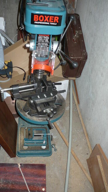 wiertarka stolowa z przystawką do frezowania w metalu i drewnie mocny silnik 12 obrotów od 200do2200 gratis : szafka pod ...