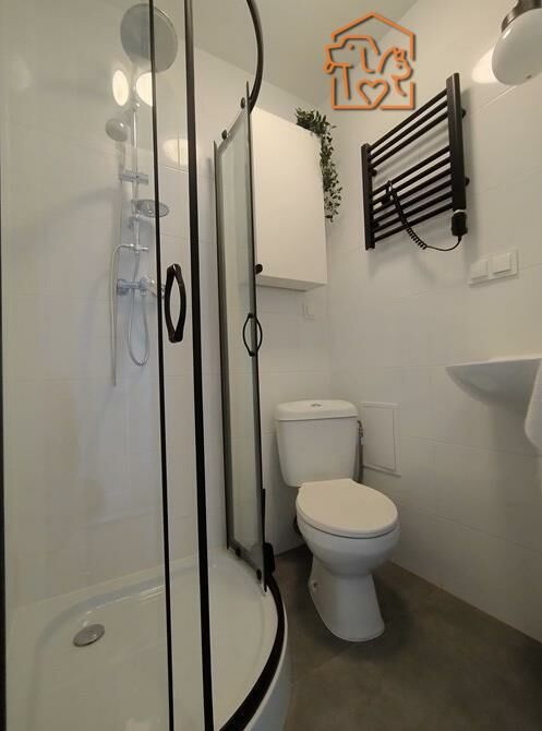 Łazienka razem z WC: kabina prysznicowa, lustro