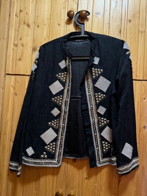 zakiet czarny, bogato zdobiony srebrnymi krysztakamiefektowny na wyjscie