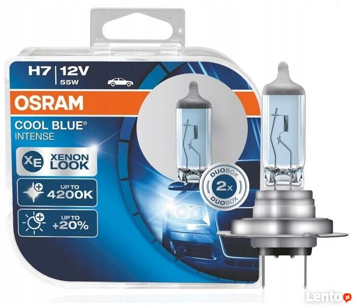 ŻARÓWKI OSRAM COOL BLUE INTENSE H7 64210 CBI 2SZTReflektorowe żarówki halogenowe OSRAM COOL BLUE INTENSE charakteryzują się piękną, przyjazną dla oka barwą światła przypominającą żarniki ksenonowe - XENON LOOK. Specjalna technologia pozwoliła na uzyskanie o 20% jaśniejszego światła, co w dużym stopniu wpływa na zwiększone bezpieczeństwo na drodze.
