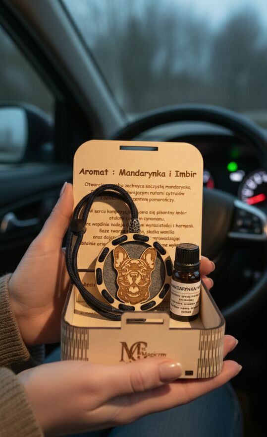 W zestawie otrzymujesz: Drewnianą zawieszkę + eleganckie drewniane pudełeczko + olejek zapachowy 10ml