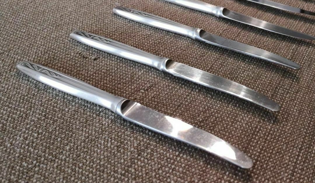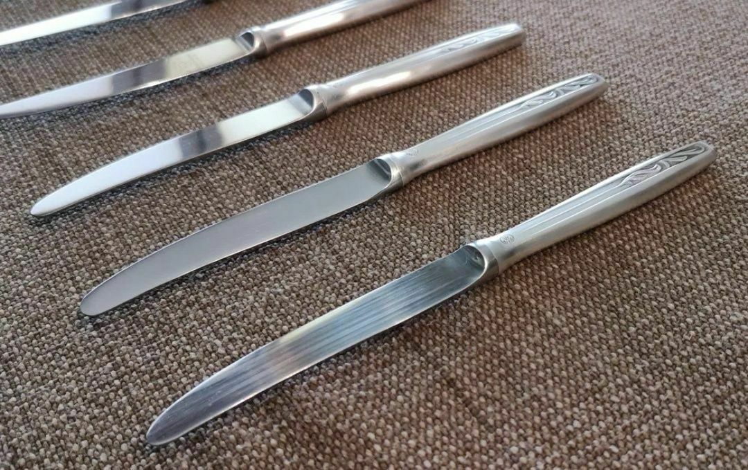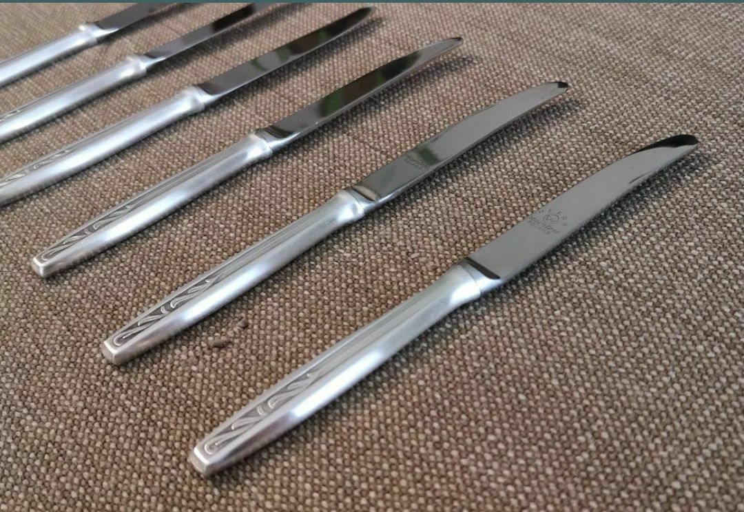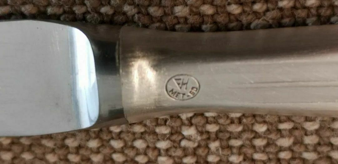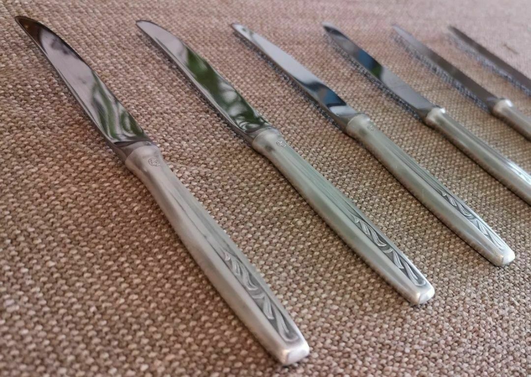 Oferuję zestaw 6 platerowanych nożyków do owoców firmy HEFRA, sygnowany HF MET 90. Wzór Eros/Ares. Jego stan oceniam jako bardzo dobry, odzwierciedlają go zdjęcia. Nożyki nie były używane, zostały lekko odświeżone. Ich długość wynosi 17, 5 cm, a ostrza wykonane są ze stali nierdzewnej. Mam takie dwa zestawy.Zainteresowanych proszę o wiadomość lub podanie numeru telefonu - odzwonię.